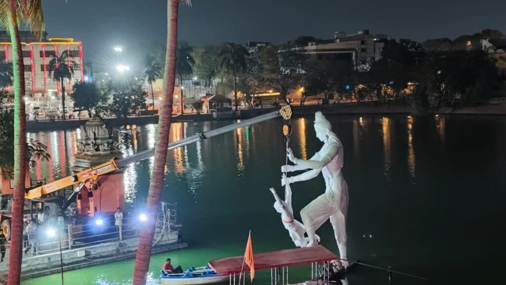 सोलापूर, दि. 12- ग्रामदैवत शिवयोगी सिध्दरामेश्वर यांच्या चरित्रातील महत्त्वपूर्ण घटना असलेल्या श्रीगिरी पर्वतावरील कमरी कोळ्ळ (दरी) येथे घडलेल्या बालक सिध्दरामेश्वर आणि श्रीशैल मल्लिकार्जुन यांच्या भेटीचा प्रसंग असलेला कमरीकोळ्ळ पुतळा सिध्दरामेश्वर मंदिर परिसरात उभारण्यात आला आहे. श्री सिध्देश्वर देवस्थान पंचकमिटीचे अध्यक्ष धर्मराज काडादी यांच्यासह देवस्थानच्या विश्वस्तांनी या पुतळ्याची पाहणी केली.