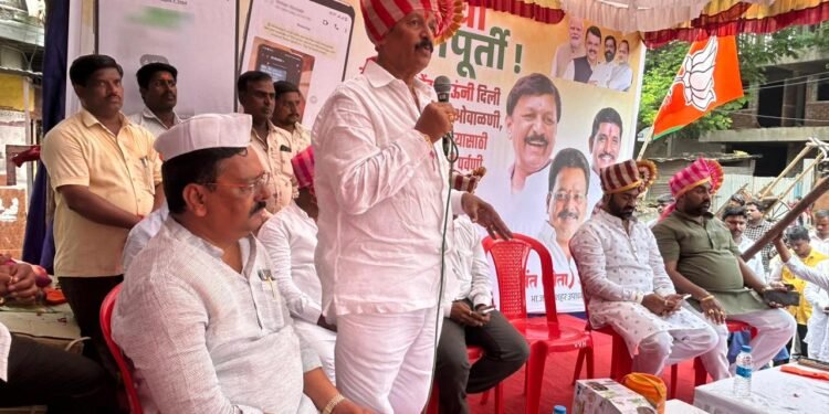 प्रास्ताविक भाषणात भाजप उपाध्यक्ष आनंत जाधव यांनी शासनाच्या योजनेची माहिती देत भाजपने वचनपूर्ती केली असून लाडक्या बहिणीच्या खात्यात पैसे जमा होत आहेत जोपर्यंत शेवटच्या बहिणीपर्यंत पैसे जमा होणार नाहीत तोपर्यंत आम्ही पाठपुरावा करू असे म्हणत मराठा वस्तीतील विकास कामांसाठी आणखी एक कोटी रुपयांची मागणी आमदार विजयकुमार देशमुख यांच्याकडे केली.