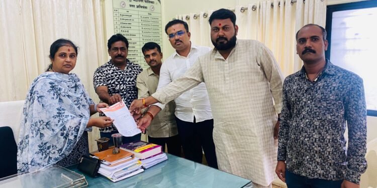 स्थानिक नागरिकांच्या समस्या संदर्भातील निवेदन भाजपा नेते राजू आलुरे, विनय ढेपे, आनंद भवर, शिरीष सुरवसे, रतन क्षीरसागर,अमोल झाडगे ,यतिराज पांढरे,विशाल यांच्या शिष्टमंडळांनी नगर अभियंता सारिका आकुलवार यांना दिले.