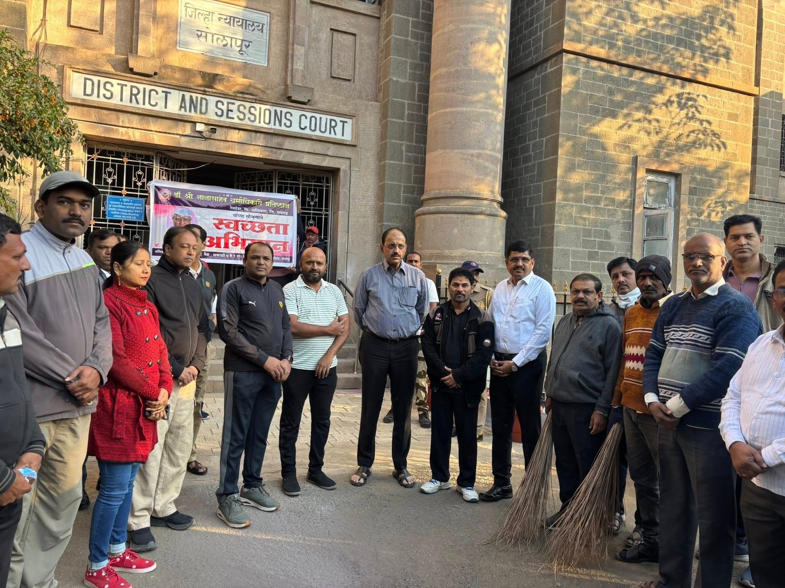 या स्वच्छता अभियानाची सुरुवात सोलापूर जिल्ह्याचे प्रमुख जिल्हा व सत्र न्यायाधीश मा. श्री. मनोज शर्मा साहेब यांच्या हस्ते करण्यात आली. यावेळी जिल्हा विधी सेवा प्राधिकरणाचे सचिव मा. प्रशांत पेटकर साहेब, दिवाणी न्यायाधीश वरिष्ठ स्तर श्री ओम प्रकाश पाटील, सोलापूर बार असोसिएशनचे अध्यक्ष अ‍ॅड. बाबासाहेब जाधव, उपाध्यक्ष अ‍ॅड. रियाज शेख, सचिव अ‍ॅड. बसवराज हिंगमिरे, सहसचिवा अ‍ॅड. मीरा प्रसाद यांची प्रमुख उपस्थिती होती.