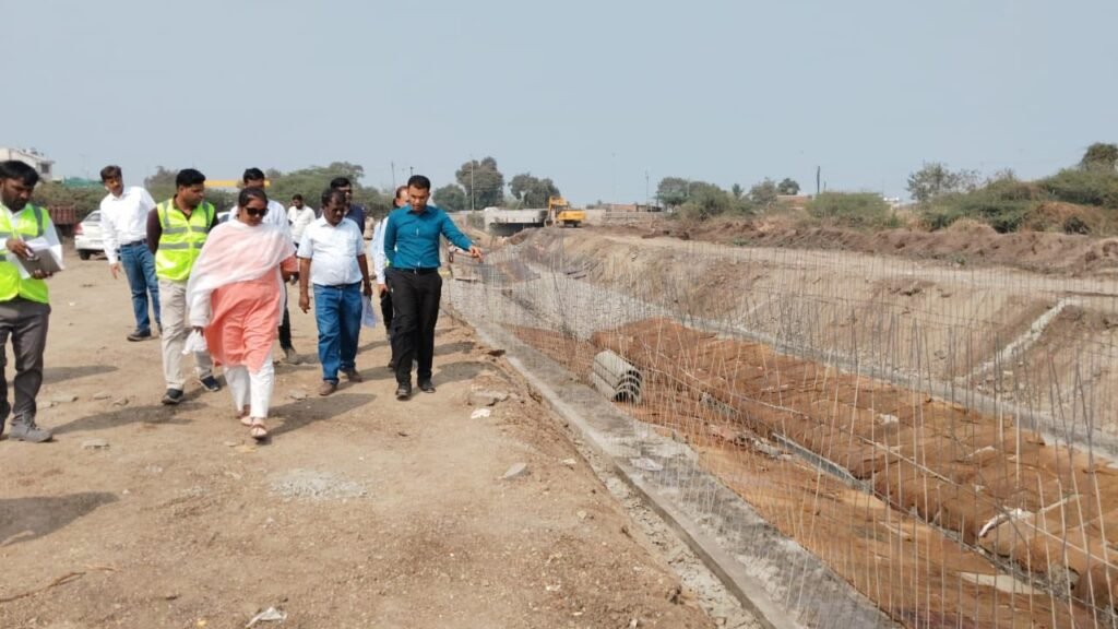 सोलापूर — सोलापूर महानगरपालिकेचे आयुक्त डॉ. सचिन ओम्बासे यांनी आज शहरातील हैदराबाद रोड, विडी घरकुल परिसरातील पर्जन्य जलवाहिनी प्रकल्पाची प्रत्यक्ष पाहणी केली. यामध्ये नाला क्र. २० (पोगुल विहार ते हैदराबाद रोड) व नाला क्र. २१ (हैदराबाद रोड ते आदर्श नगर) या सुरू असलेल्या कामाचा समावेश होता.