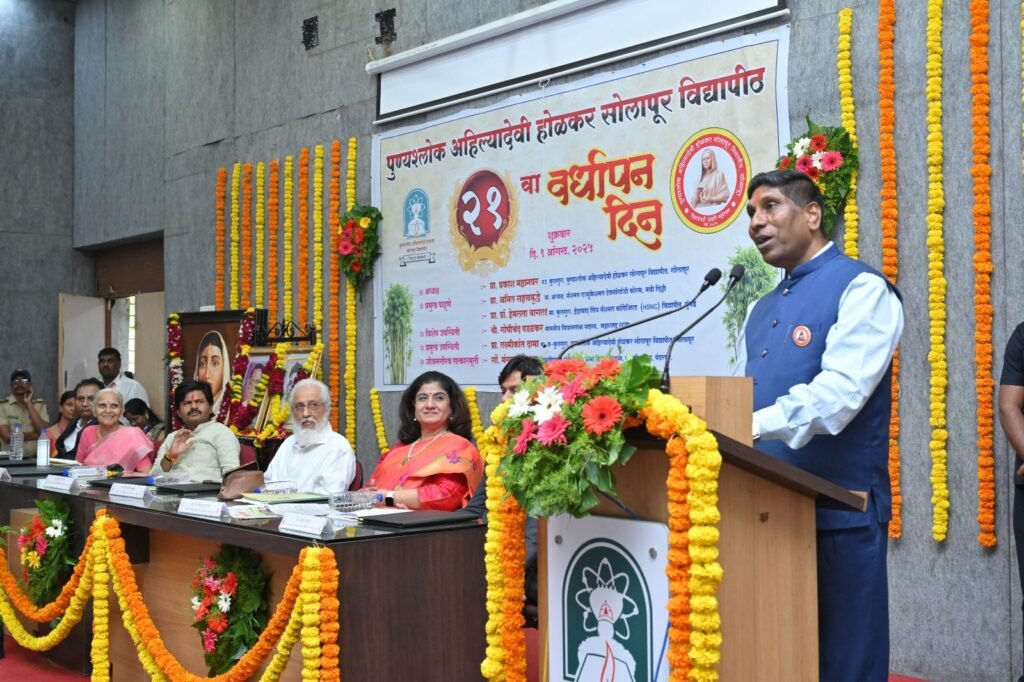 यावेळी डॉ. अनिल सहस्त्रबुद्धे म्हणाले की, पुण्यश्लोक अहिल्यादेवी होळकर सोलापूर विद्यापीठाला आज 21 वर्षे पूर्ण झाले, आता खऱ्या अर्थाने विद्यापीठाच्या विकासाचा प्रवास सुरू झाला आहे. गेल्या 21 वर्षातील विद्यापीठाची वाटचाल व प्रगती चांगली असून यापुढे विद्यापीठाने समाजाशी जोडून व समाजाच्या विकासासाठी आणि शेवटच्या घटकासाठी काम केले पाहिजे. उद्योजक पिढी निर्माण करण्याचे काम विद्यापीठाने केले पाहिजे. विकसित भारतासाठी सर्व नागरिकांना सोबत घेऊन आणि त्यांचा सहभाग घेऊन विकास साधला पाहिजे, असे मतही त्यांनी यावेळी व्यक्त केले.