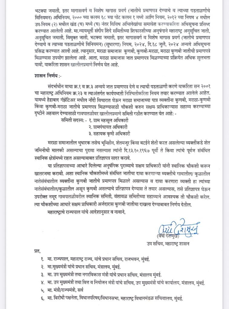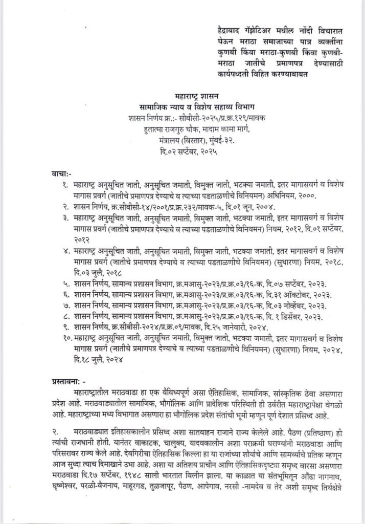 मराठ्यांचा ऐतिहासिक विजय..! हैदराबाद गॅझेटचा जीआर जारी..!
