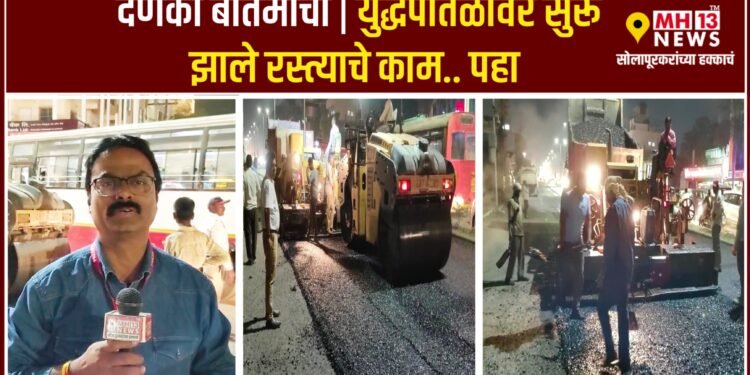 छत्रपती संभाजी राजे चौक म्हणजे सोलापूरचे प्रवेशद्वार असून हा रस्ता नेहमी वादाचा ठरलेला आहे. या ठिकाणचे रस्त्याचे काम अत्यंत निकृष्ट दर्जाचे झाल्याने या ठिकाणी वाहनधारकांची अक्षरशः घसरगुंडी होत होती. अनेक वाहनधारक जखमी झाल्याची बातमी एमएच १३ न्यूज च्या माध्यमातून दाखवण्यात आली त्यावर महापालिका प्रशासनाने तात्काळ दखल घेऊन आज शुक्रवारी युद्ध पातळीवर त्या रस्त्याचे काम सुरू केले आहे.
