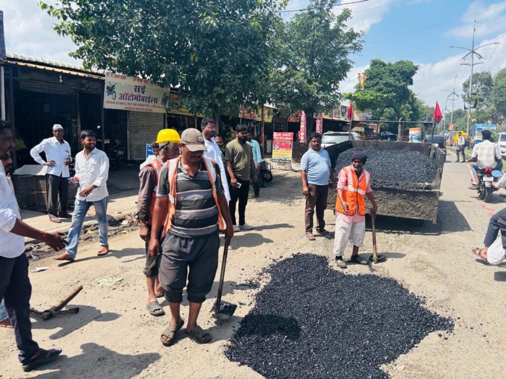 अखेर आज सोमवारी पावसाने उघडीप दिल्यानंतर महामार्ग विभागाने तात्पुरत्या स्वरूपात दुरुस्तीला सुरुवात केली. महापालिकेकडे वारंवार पाठपुरावा करूनही दुर्लक्ष झाल्यानंतर महामार्ग विभागाने पुढाकार घेऊन प्रत्यक्ष दुरुस्ती कामास सुरुवात केली आहे.राहिलेले काम उद्या पूर्ण केले जाईल,” अशी माहिती आनंद भवर यांनी दिली.