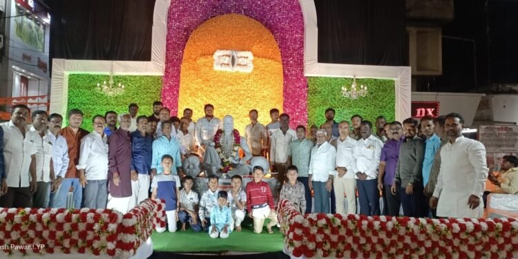राष्ट्रीय छावा संघटनेचे प्रदेश उपाध्यक्ष योगेश (दत्ता) पवार यांच्या हस्ते छत्रपती शिवाजी महाराजांच्या मूर्तीचे पूजन करण्यात आले. यावेळी मंडळाचे प्रमुख पदाधिकारी, कार्यकर्ते आणि येथील व्यापारी मोठ्या संख्येने उपस्थित होते.