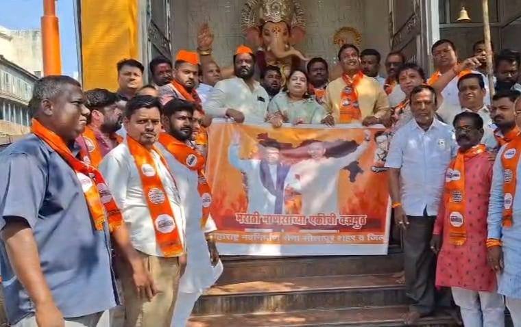 सोलापूर — मनसे प्रमुख राज ठाकरे आणि शिवसेना पक्षप्रमुख उद्धव ठाकरे पुन्हा एकत्र येत असल्याची घोषणा होताच सोलापुरात उत्साहाचे वातावरण निर्माण झाले. या ऐतिहासिक घडामोडीचे स्वागत करत शहरात जल्लोष साजरा करण्यात आला. सोन्या मारुती गणपती मंदिरात महाआरती करून मनसे व शिवसेनेच्या पदाधिकाऱ्यांनी आनंद व्यक्त केला.
