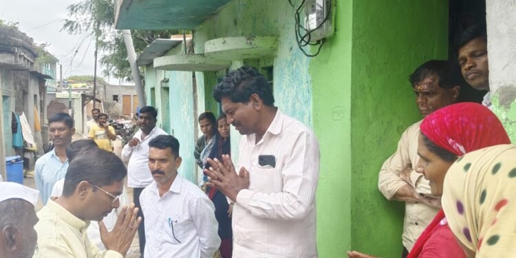 महादेव कोगनुरे यांनी घेतली औज मंद्रूप येथील जळीतग्रस्त कुटुंबियांची भेट.