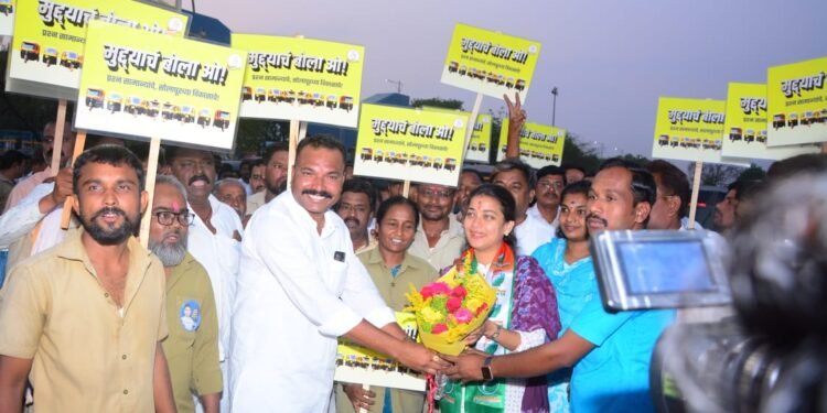 सोलापूर लोकसभा निवडणुकीसाठी महाविकास आघाडीच्या वतीने आमदार प्रणिती शिंदे यांना उमेदवारी देण्यात आली आहे. त्या पार्श्वभूमीवर शहर व जिल्हा ऑटो रिक्षा चालक संघटनेच्यावतीने बुधवारी प्रणिती ताई शिंदे यांच्याशी संवाद साधून आपला पाठिंबा जाहीर केला. तसेच आजपासून प्रणिती शिंदे यांचा प्रचार सुरू करणार असल्याचेही रिक्षा चालकांनी स्पष्ट केले.