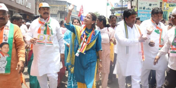 येत्या 7 मे ला हाताच्या चिन्हासमोरील बटन दाबून मताधिक्य देण्याचे आवाहनही प्रणिती शिंदे यांनी केले. यावेळी पद यात्रेचा छ्त्रपती शिवाजी महाराज चौक येथे समारोप करताना त्यांनी महाविकास आघाडीतील घटक पक्षाचे आभार मानत शेवटचे दोन दिवस या लोकसभा निवडणुकीच्या रणागणात हा किल्ला लढवणे गरजेचं असल्याचे ही मत यावेळी प्रणिती यांनी व्यक्त केले.