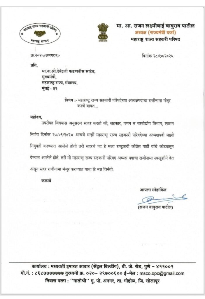 .हे पत्र सोशल मीडियावर आणि व्हॉट्सअॅप ग्रुप्सवर मोठ्या प्रमाणात व्हायरल झाले असून, समर्थक त्याला “राजकारणातील दुर्मिळ नैतिकतेचा नमुना” म्हणत आहेत. राष्ट्रवादी सोडून भाजपमध्ये प्रवेश करताना पदाचा मोह न ठेवता दिलेला राजीनामा हा पाटील यांच्या ‘क्लीन पॉलिटिक्स’ स्टाईलचा भाग असल्याचे मत व्यक्त केले जात आहे.