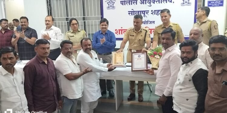 सोलापूर शहरातील शिवजयंती मिरवणुकीचे संपूर्ण राज्याला आकर्षण असते.यंदाच्या छत्रपती शिवाजी महाराज जयंती 2024 ,शिवजयंती मिरवणुकीच्या वेळी माऊली युवा प्रतिष्ठान भजनी मंडळाच्या वतीने पारंपरिक वाद्याचा वापर करून आदर्श मिरवणूक काढली होती. त्याबद्दल पोलीस आयुक्तालयाच्या वतीने आज 8 एप्रिल रोजी संस्थेच्या पदाधिकाऱ्यांना पोलीस आयुक्तालयात प्रशंसापत्र प्रदान करण्यात आले.