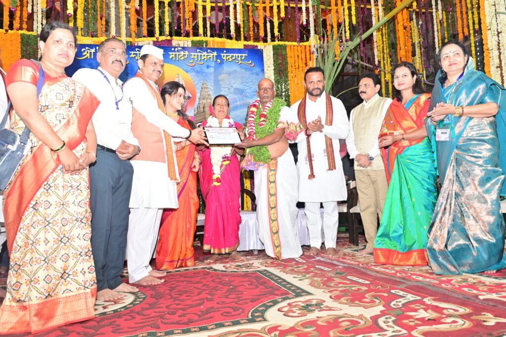 यावेळी पालकमंत्री जयकुमार गोरे, जलसंपदा मंत्री गिरीश महाजन, सौ. अमृता फडणवीस, आमदार समाधान आवताडे, आमदार सचिन कल्याणशेट्टी, आमदार बाबासाहेब देशमुख, आमदार रणजितसिंह मोहिते पाटील, आमदार संजय सावकारे, आमदार देवेंद्र कोठे, आमदार अभिजीत पाटील, विभागीय आयुक्त चंद्रकांत पुलकुंडवार, जिल्हाधिकारी कुमार आशीर्वाद, मंदिर समितीचे सह अध्यक्ष गहिनीनाथ महाराज औसेकर, मंदिर समितीचे कार्यकारी अधिकारी राजेंद्र शेळके यांच्यासह समितीचे सर्व सदस्य व अन्य मान्यवर उपस्थित होते.